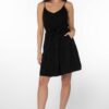 A soft and lightweight tiered dress made from Tencel?. This black dress features a v-neck, a self-belt, adjustable spaghetti straps, and a flowy tiered skirt.