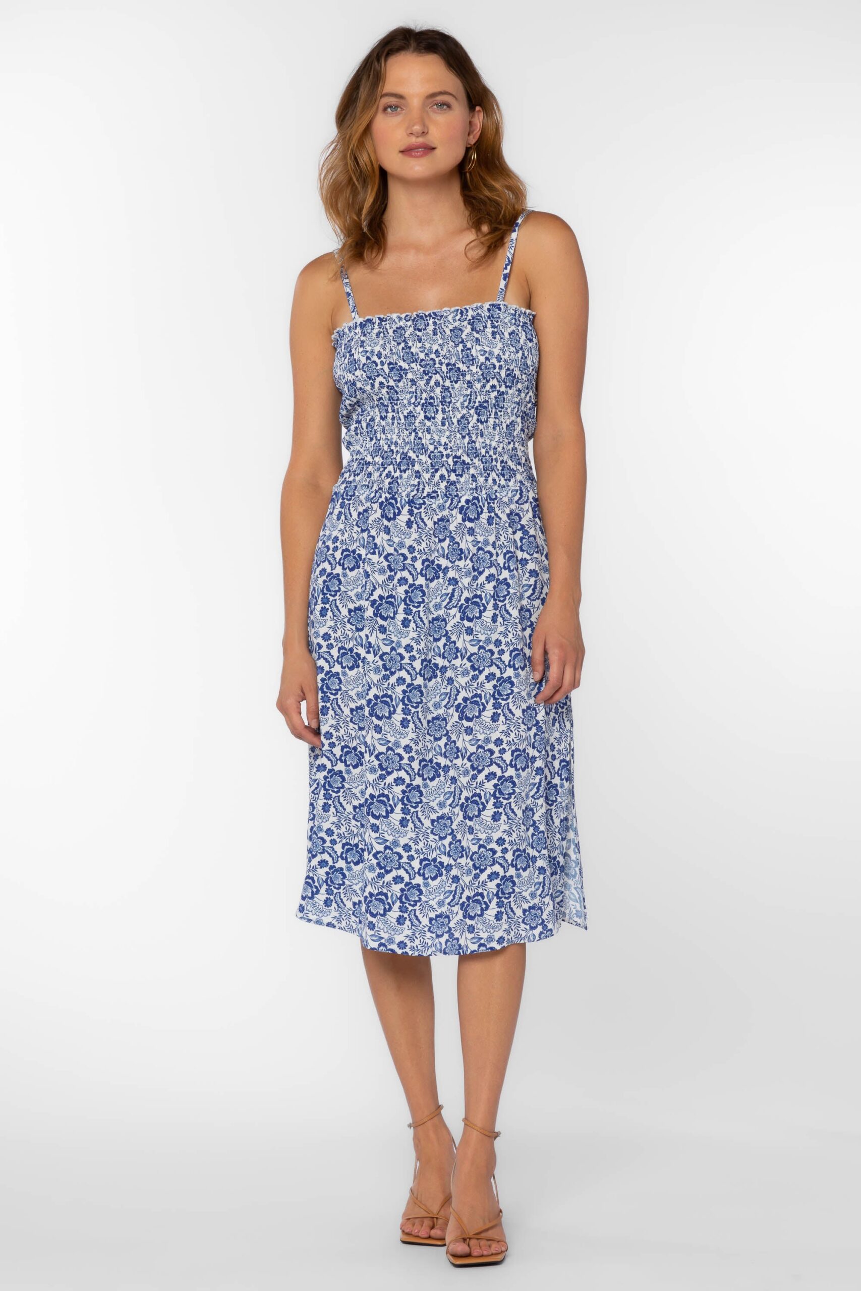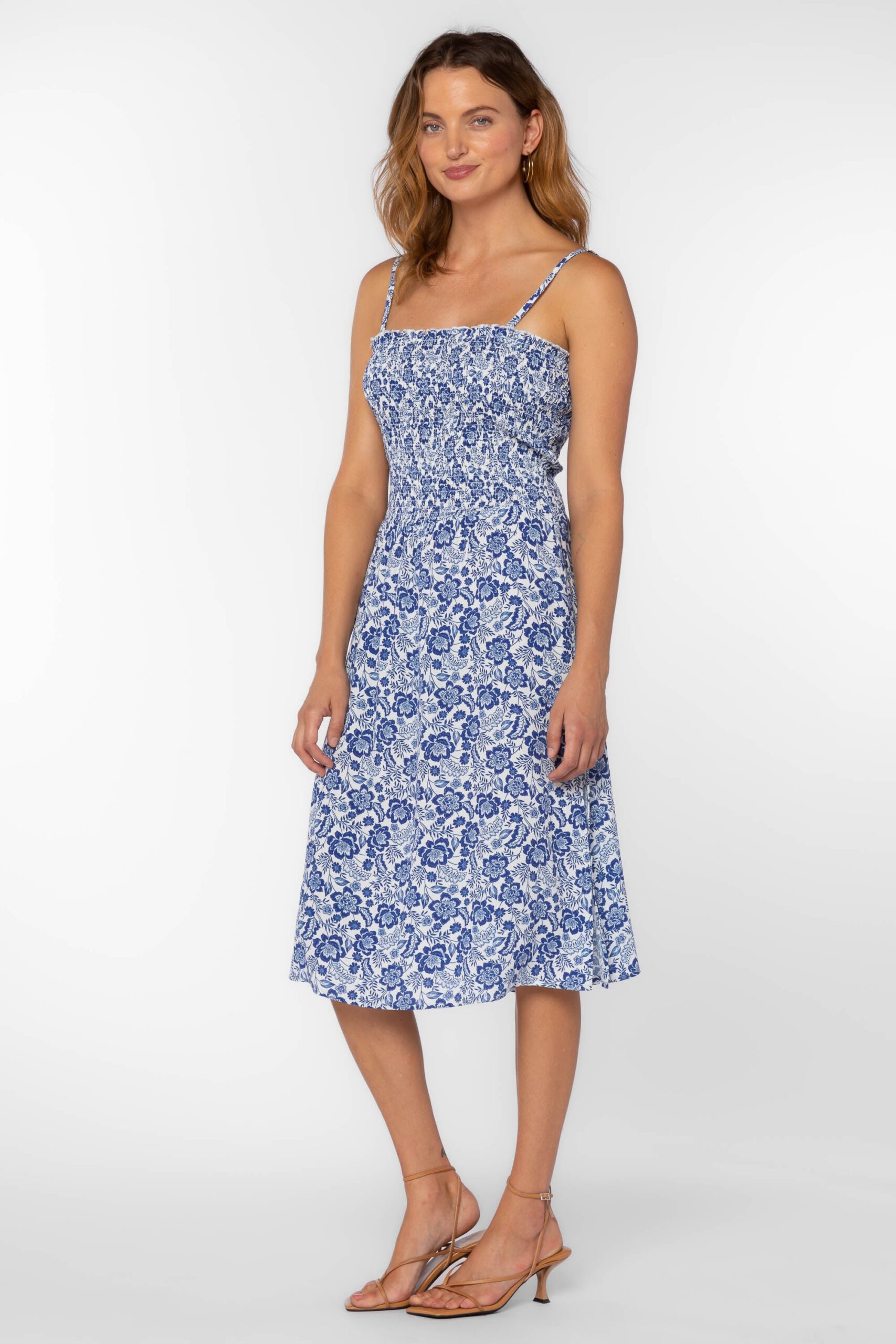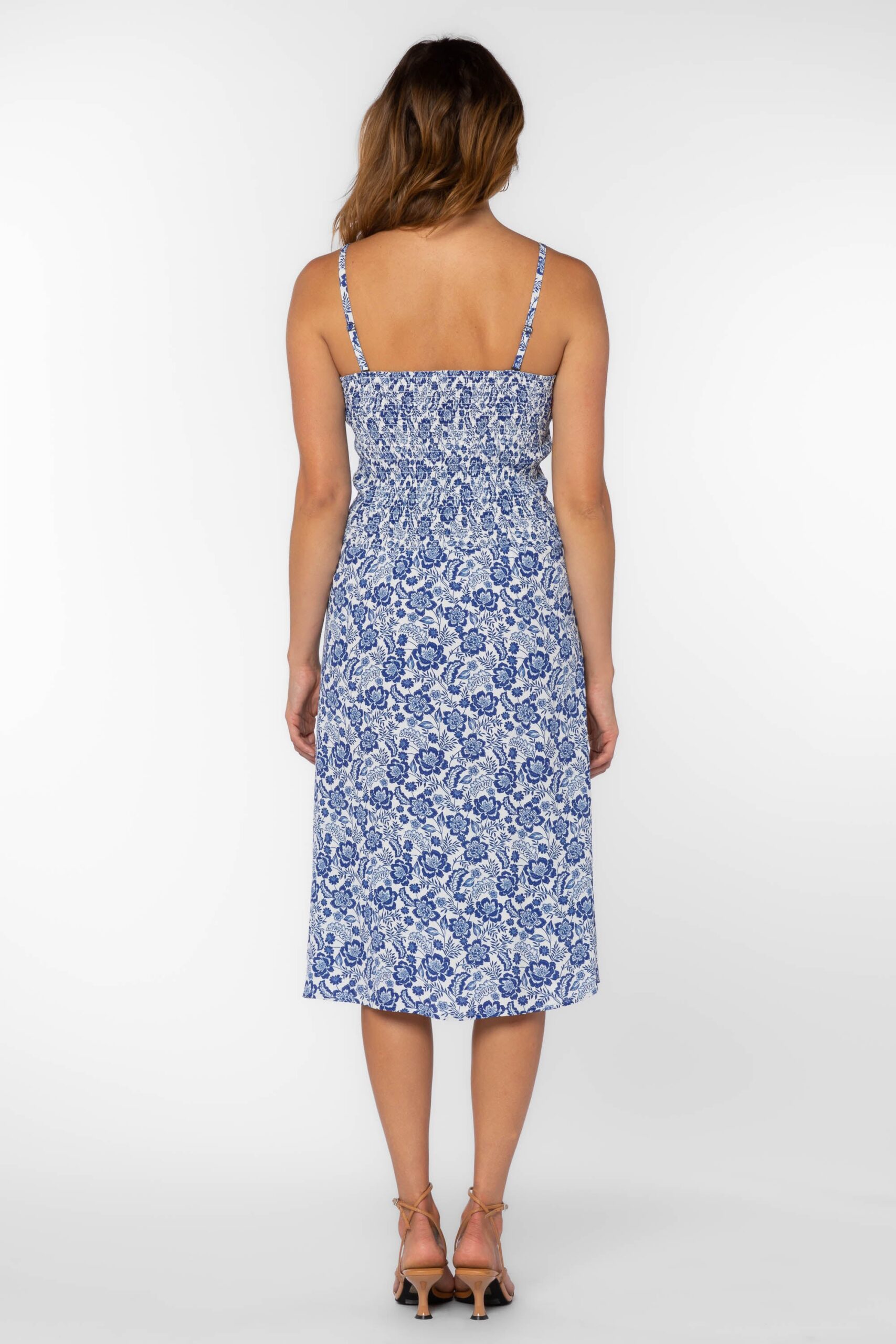The Lana is an empire dress designed to flatter the silhouette. Crafted from lightweight fabric, this dress features elegant smocked details at the bust and a side slit for ease of movement. The removable spaghetti straps offer versatile styling options and side pockets add convenience. Perfect for special occasions or everyday wear.