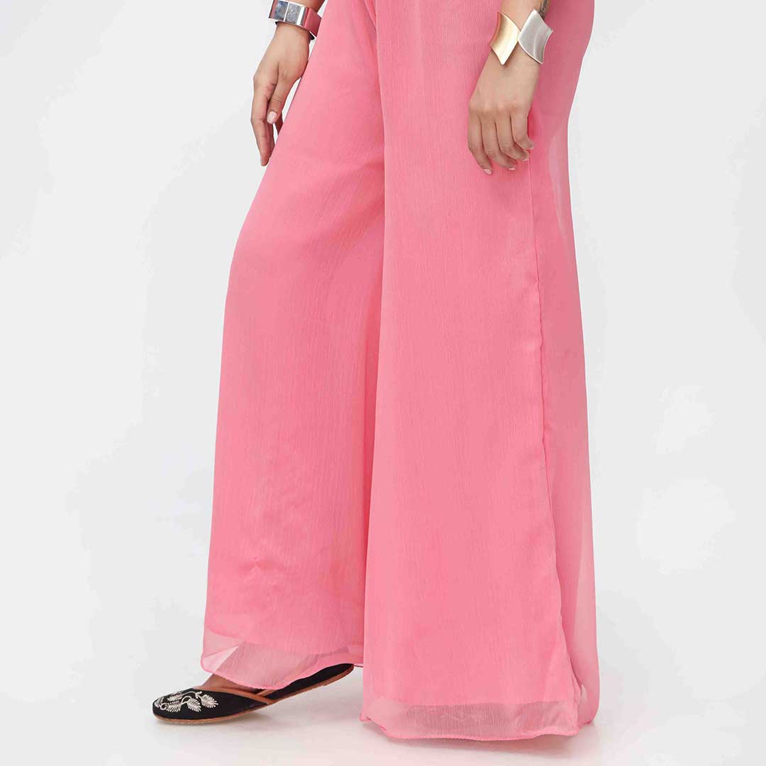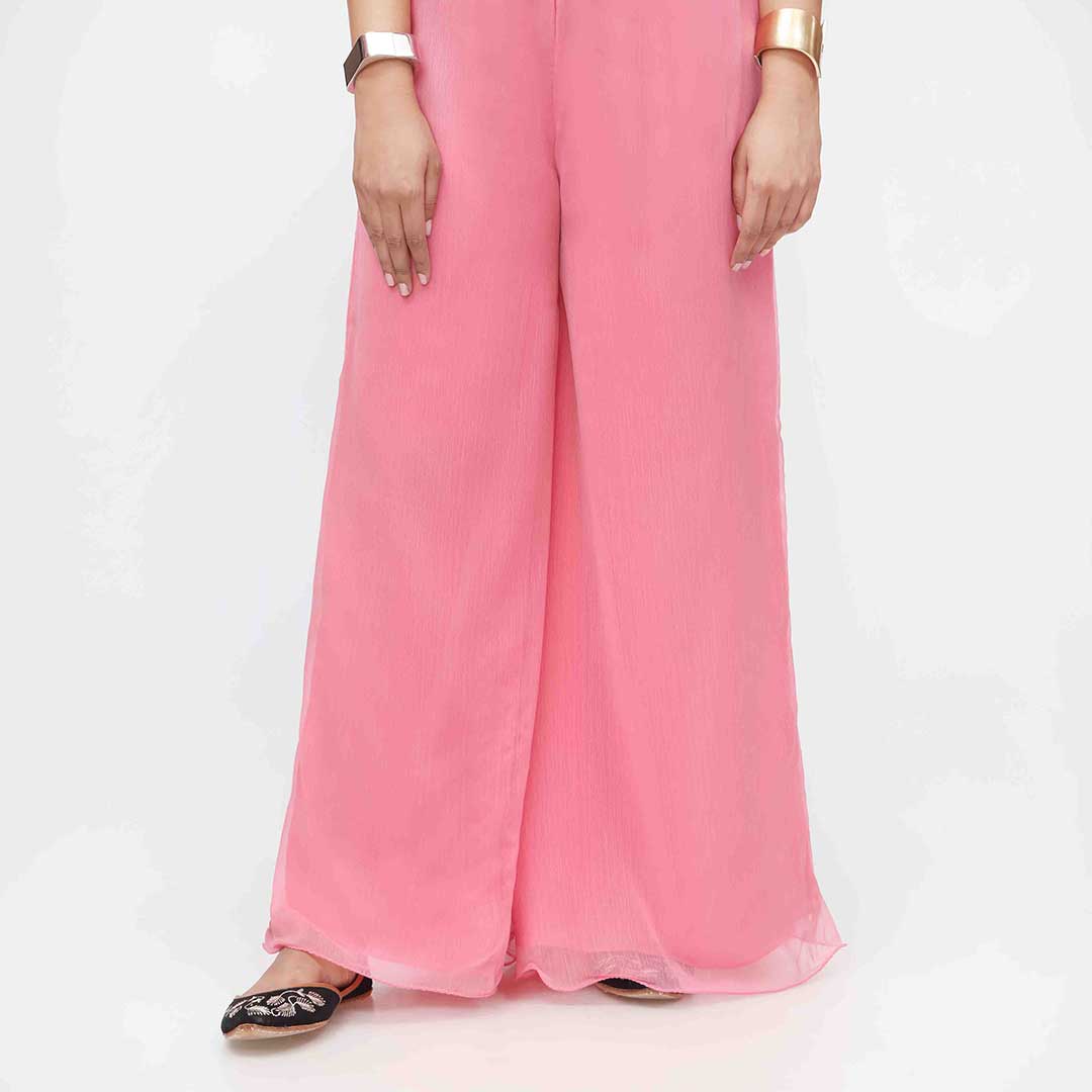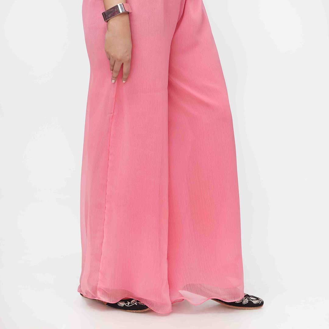 Elegantly crafted dyed chiffon palazzo seamlessly blends comfort with sophistication for a timeless style statement.