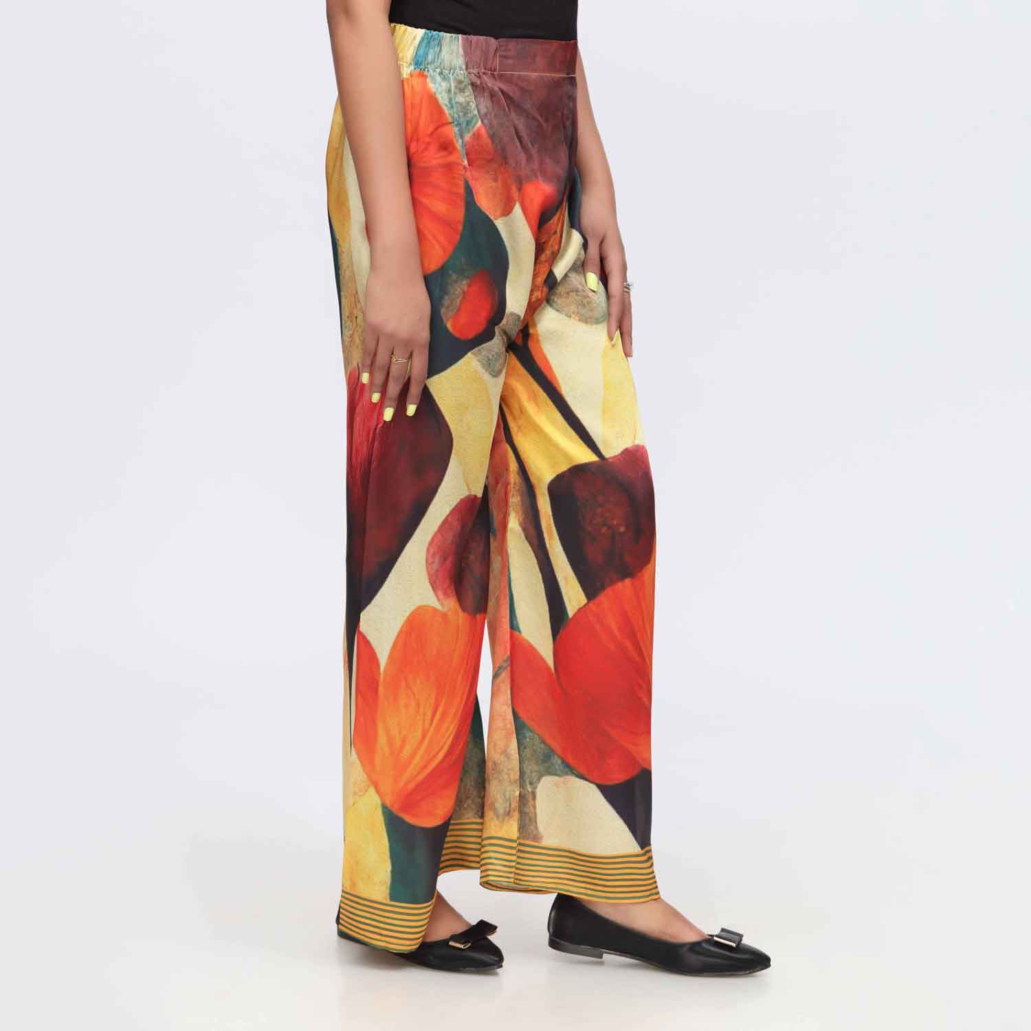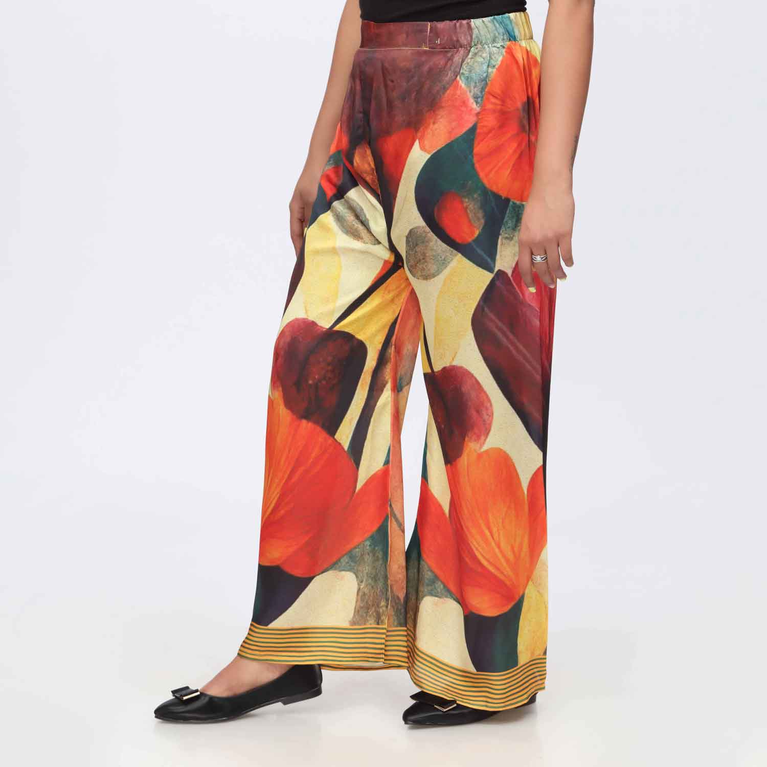 Unleash your style with our digitally printed shamoz silk trousers, blending contemporary artistry with luxurious comfort for a standout look.