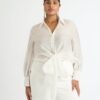 Timeless shirting has been given a modern . Introducing our Reflections Shirt – featuring front elongated ties to wrap or tie in bow and concealed front?button?placket. Pair back with our Rival Mini Skirt and Dazzle Earrings to complete the look.?