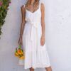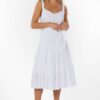 The Tiered Sweetheart Dress is perfect for your next summer event! With a flattering v-neckline and flowy tiers, this dress will keep you feeling cool and stylish all day long. The self-belt ensures a comfortable fit, while the midi length provides a touch of elegance.