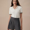Designed with a modern high-waisted silhouette, these shorts offer a flattering fit that accentuates the waist while providing comfort and style. The pleated front adds a touch of sophistication, making them suitable for both casual and dressier occasions.