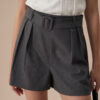Designed with a modern high-waisted silhouette, these shorts offer a flattering fit that accentuates the waist while providing comfort and style. The pleated front adds a touch of sophistication, making them suitable for both casual and dressier occasions.